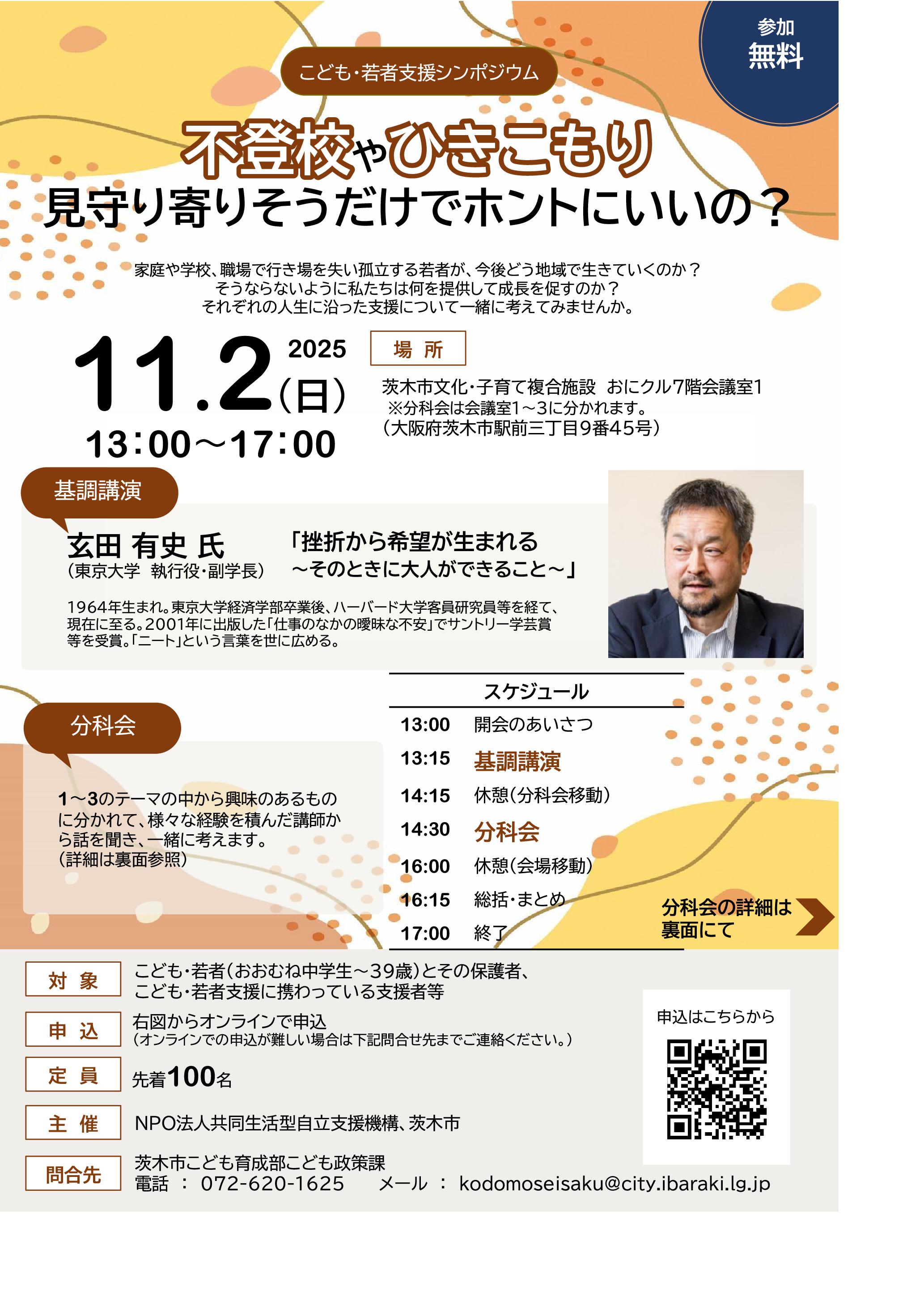 こども・若者支援シンポジウム~不登校やひきこもり 見守り寄りそうだけでホントにいいの?~