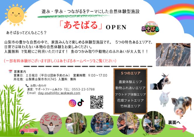 遊ぶ・学ぶ・つながるをテーマにした自然体験型施設「あそばる」OPEN