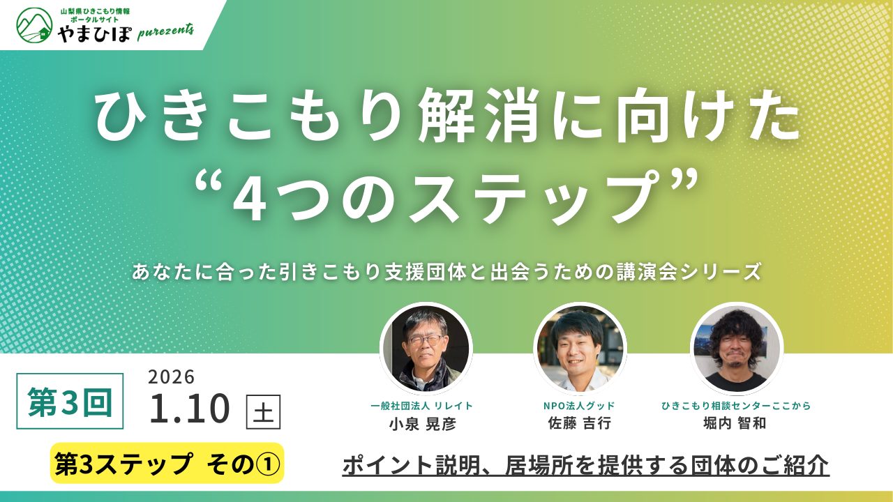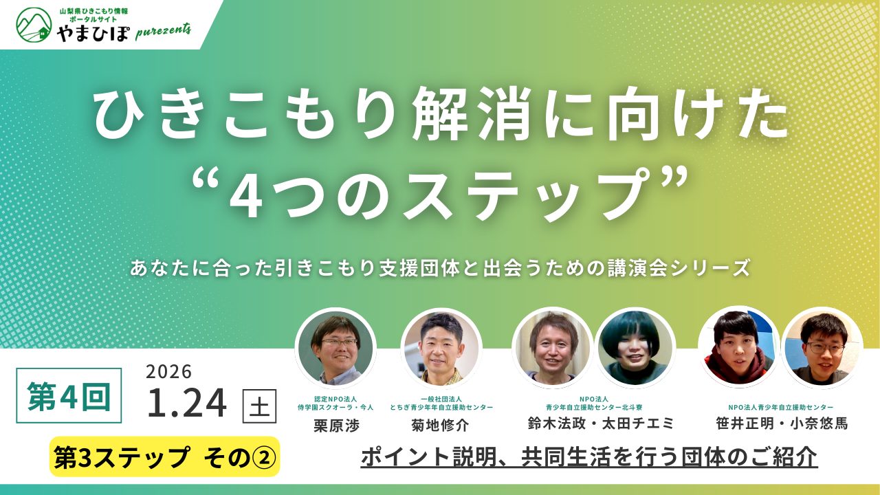 ひきこもり解消に向けた”4つのステップ”〜あなたに合った支援団体に出会うための講演会シリーズ